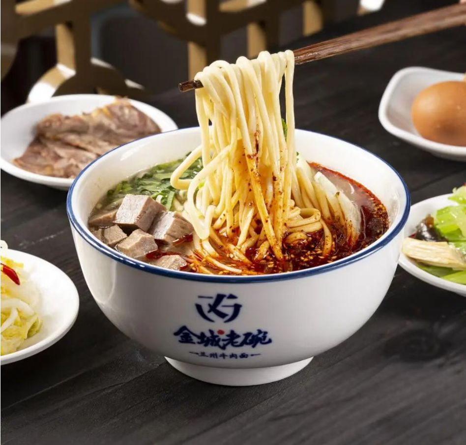 "金城"二字溯源兰州历史旧称,"老碗"之意坚守传统工艺,金城老碗的命名本身就是对陇原文化的深情告白。从和面醒面的时序把控到牛骨熬汤的火候拿捏,品牌始终延续老匠人代代相传的技艺精髓,8种可选面型更将"一清二白三红四绿五黄"的正宗标准落到实处。这种对本味的坚守,恰与兰州牛肉拉面作为黄河文化符号的内涵一脉相承,呼应了兰州牛肉拉面IP指数持续攀升背后的文化认同。